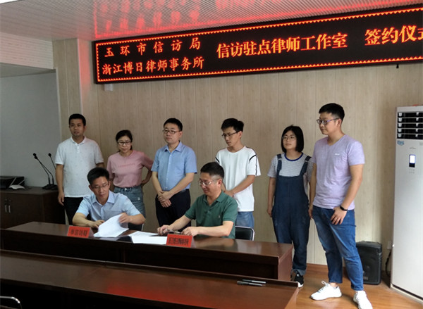 近日,玉环市信访驻点律师工作室揭牌仪式在玉环市信访局举行,玉环市信访局局长龚时波、浙江博日律师事务所主任李孙平参加揭牌,双方同时还签订合作协议。 近年来,玉环市每周安排律师参与市领导接访工作,发挥律师职业优势和第三方作用,引导信访群众依法表达诉求和解决纠纷,取得良好的社会效果。为推动律师参与信访工作深入开展,在借鉴外地经验基础上,市信访局和市司法局沟通,选定富有信访接访经验的浙江博日律师事务所,采取政府购买服务方式,市信访局支付一定费用给浙江博日律师事务所,双方联合设立信访驻点律师工作室。 据悉,信访驻点律师工作室公示浙江博日律师事务所名称和全体律师照片,为便来访群众寻求法律帮助。浙江博日律师事务所每个星期一、三、五上午,轮流安排一个执业三年以上、经验丰富的律师在驻点工作室上班。驻点律师主要参与接待群众来访,为反映涉法涉诉信访事项的群众解答法律问题,提供法律咨询意见;参与信访积案、重复信访事项的化解,参与处理疑难复杂信访事项,为信访事项提供法律意见。同时,对重大、复杂、疑难信访事项,还要提交律师事务所集体讨论。信访驻点律师工作室的成立,为律师参与信访工作创造了有利条件,充分发挥律师在化解社会矛盾纠纷、维护社会稳定方面的积极作用。