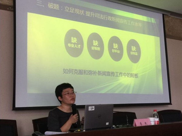 会议邀请了省厅宣传处李爽副处长进行专题授课指导。李爽副处长就如何挖掘宣传素材、更新宣传理念、引导热点舆情、切实增强新闻媒体的传播力影响力与大家进行深入交流,并对下一步如何做好司法行政系统新闻宣传工作、切实发挥“之江法云”微信塔群功能效应提出了设想。